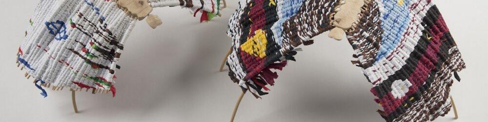 Woven crepe paper & carved wood